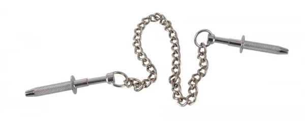 Между собой штырьки соединены металлической цепочкой, которая усиливает яркие ощущения реагируя на каждое Ваше движение! Также, цепочка облегчает болезненные ощущения, охлаждая Ваше разгоряченное тело... Именно поэтому для более интенсивной стимуляции рекомендуем снять цепь!